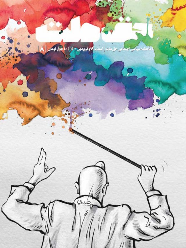 "منبع تصویر، Hadi Heidariتوضیح تصویر، آزادی بیان هنریگاهی سکوت بهترستماهنامه حق ملت، شماره نوروزی خود را به "آزادی بیان هنری" اختصاص داد که از حقوق ملت است"پوسترشان را یا توی سوپرمارکتها دیده یا پشت ویترین مغازهها یا روی تابلوهای تبلیغاتی شهری.