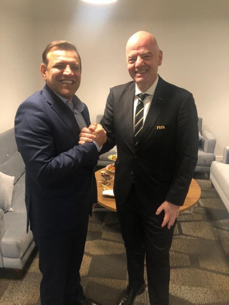 به گزارش "ورزش سه"، این دیدار در شرایطی اتفاق افتاده که پیش تر در ملاقاتی دیگری که میان اینفانتینو و عزیزی خادم برگزار شده بود، دو طرف در مورد موضوعات مختلفی از جمله اصلاح بند یک اساسنامه فدراسیون فوتبال برای تایید نهایی و همینطور حضور بانوان در ورزشگاه های ایرانی با یکدیگر گفتگو کرده بودند و حالا در حاشیه مراسم جام عرب بار دیگر با دعوت اینفانتینو از عزیزی خادم این دیدار تازه شده و احتمالا گریزی به صحبتهای گذشته نیز زده شده است.
