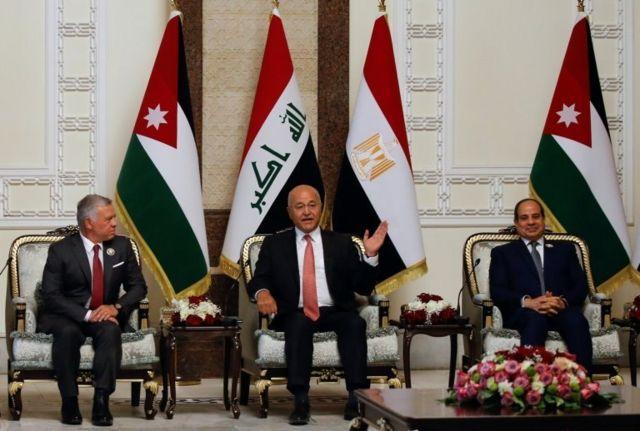 عبدالفتاح سیسی رئیس جمهوری مصر، برهم صالح رئیس جمهوری عراق و ملک عبدالله دوم پادشاه اردن در بغداد پایتخت عراق دیدار کردند. مصطفی کاظمی نخست وزیر عراق هم در این نشست حضور داشت.
