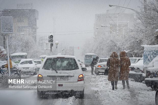 بارش اولین برف زمستانی در تبریز و ترافیک سنگین خیابانها