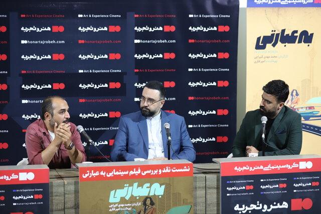 به گزارش خبرگزاری مهر به نقل از روابط عمومی گروه سینمایی «هنروتجربه»، در ابتدای نشست نقد و بررسی فیلم سینمایی «به عبارتی»، میثم کریمی که اجرای این نشست را بر عهده داشت، با اشاره به فیلمهایی که در گروه سینمایی «هنروتجربه» اکران میشود، گفت: امروز بسیاری علاقه دارند تا آثارشان را در گروه «هنروتجربه» نمایش بدهند و فیلم «به عبارتی» از جمله فیلمهای کمدی است که به قول یکی از رسانهها، از نوع «هنروتجربه» است.