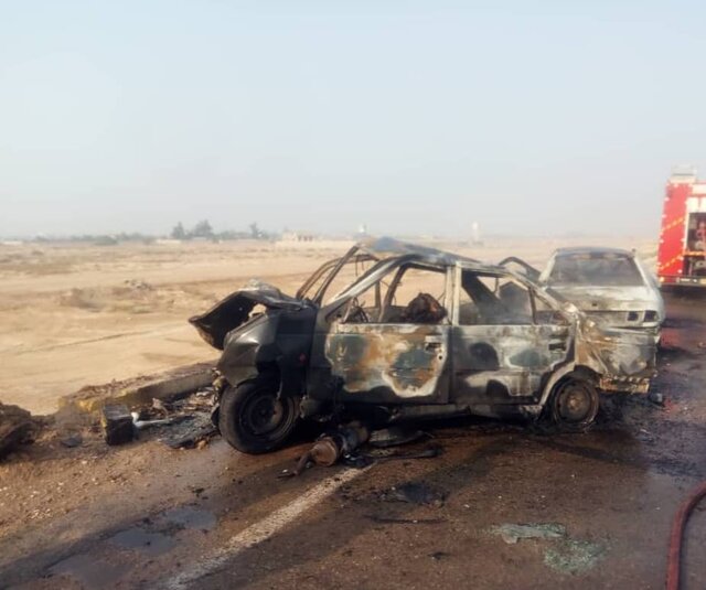 تصادف ۲ خودرو در گناوه/رانندگان در آتش سوختند