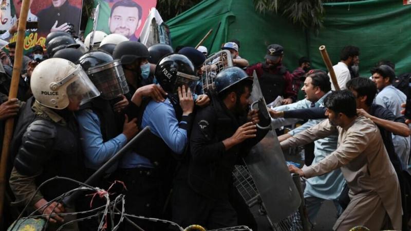طبق گزارشها، نیروهای پلیس در حالی که قصد داشتند مسیری را به سمت خانه عمران خان باز کنند، با در دست داشتن تابلوهایی مبنی بر حکم دستگیری رهبر ۷۰ ساله حزب تحریک، با دستکم ۲۰۰ نفر از حامیان عمران خان در حالی که پرچمهای قرمز و سبز حزب تحریک انصاف پاکستان (PTI) را در دست داشتند مواجه شدند. تعدادی از آنان نیز اقدام به پرتاب چوب و سنگ کردند، سپس یک ماشین آبپاش و گاز اشک آور به سمت جمعیت شلیک کرد.
