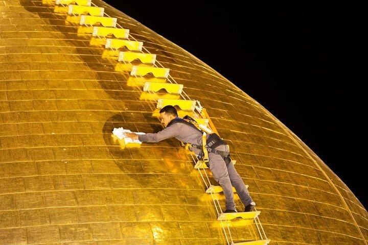 در ادامه تصاویری از شستوشوی گنبد حرم حسینی را مشاهده میکنید:
