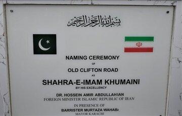 امیرعبداللهیان در برنامههای سفرش به پاکستان، پس از ورود به کراچی و ادای احترام به بنیانگذار فقید پاکستان از نامگذاری خیابانی به نام امام خمینی(ره) رونمایی کرد.