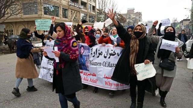 این در حالی است که گروههایی از زنان در کابل و بعضی شهرهای دیگر بارها به محدودیتهای زنان از طرف طالبان اعتراض کردهاند و خواستار حقوق کار و تحصیل شدند. روز یکشنبه، معترضان زن گفتند که طالبان برای متفرق کردن آنها از اسپری فلفل (مرچ) استفاده کردهاند.