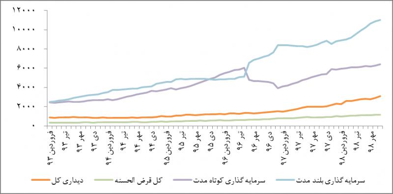 در سال ۹۸ که بازارهای داراییهایی نظیر ارز و مسکن و طلا که به ثبات نسبی رسیده بودند و دیگر گزینه جذابی برای فعالیتهای سوداگرانه نبودند افراد بنابر درجه ریسکپذیری خود به سمت سپردههای بلندمدت بانکی و یا در آن سوی طیف ریسکپذیری به سمت بازار سرمایه جذب شده و لذا سپردههای دیداری را افزایش دادهاند.