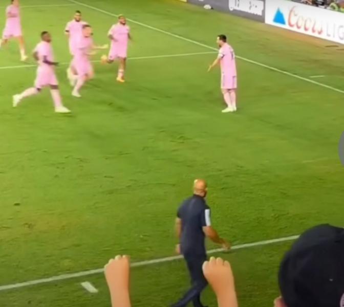 مسی بعد از گلزنی در کنار هم تیمی هایش در کنار زمین به جشن و شادی پرداخت. این منجر به این شد که این بادیگارد شروع به دویدن کرد تا موقعیتی نه چندان دور از ابر ستاره قرار بگیرد.