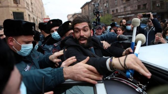 معترضان در ایروان، پایتخت ارمنستان، در اعتراض به توافق آتشبس با جمهوری آذربایجان، خیابانها را بستهاند و با برگزاری تظاهرات گسترده خواهان کنارهگیری نیکول پاشینیان، نخستوزیر این کشور هستند.