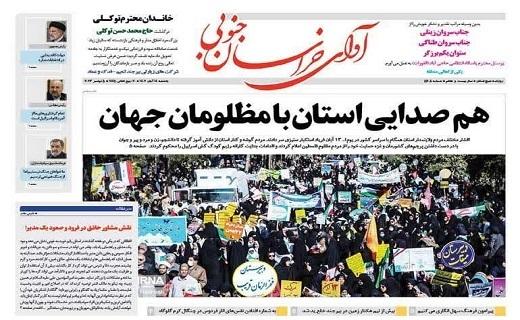 هم صدایی استان با مظلومان جهان در روزنامه آوای خراسان جنوبی و دانشجویان بیرجندی در یک ساختمان متروکه قاین در روزنامه امروز خراسان جنوبی عناوین تیتر روزنامههایی است که میتوانید امروز مشاهده کنید.