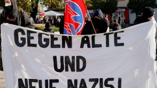 همزمان گروههای چپ و حامی پناهجویان تظاهراتی در اعتراض به گشتهای این گروه راست افراطی سازماندهی کرده بودند.