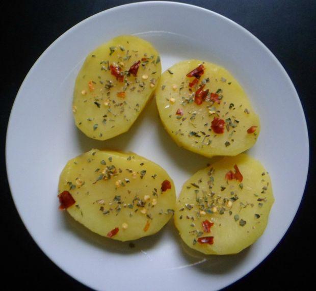 پودر فلفل و پونه خشک رو روی سیب زمینی بریزید.