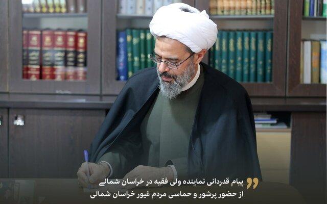 متن پیام حجتالاسلام والمسلمین رضا نوری، نماینده ولی فقیه در خراسان شمالی به این شرح است: