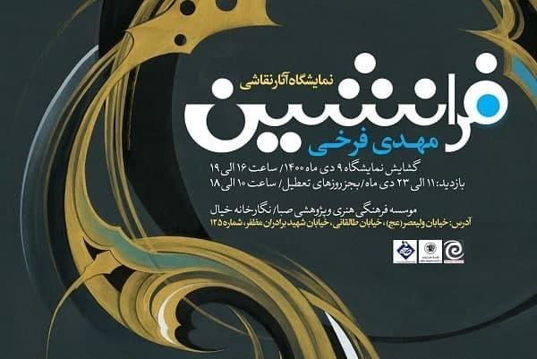 «فرا نشین» روز پنجشنبه ۹ دیماه ساعت ۱۶ در نگارخانه «خیال» مؤسسه فرهنگی هنری و پژوهشی صبا گشایش مییابد.