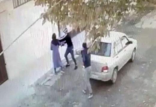 این ۲ جوان بدون هرگونه ترس و اضطرابی در کمال خونسردی نه تنها کیف این خانم جوان را میقاپبند بلکه چندین ضربه محکم را با خشونت هرچه تمام به او وارد میکنند و در کمال خونسردی سوار بر خودرو می شوند و از محل میروند.