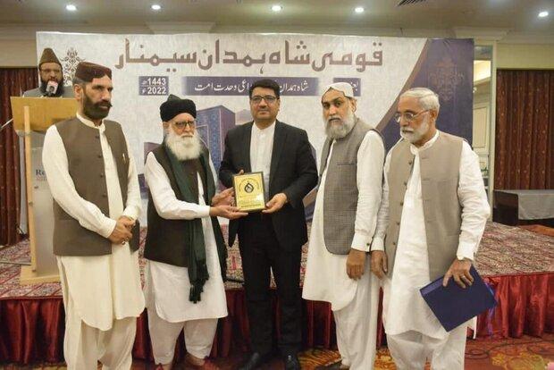 به گزارش خبرگزاری مهر، سمینار «شاه همدان؛ داعی وحدت امت» با حضور حسن نوریان، سرکنسول جمهوری اسلامی ایران در کراچی و جمعی از استادان دانشگاه، مقامهای سیاسی سِند، شخصیتهای مذهبی و اصحاب رسانهای پاکستان در هتل «ریجنت پلازا» (هتل تاج محل سابق) شهر کراچی برگزار شد.