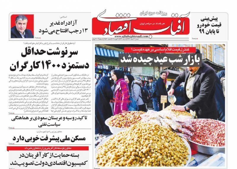 تصاویر صفحه نخست روزنامه های اقتصادی ۲ اسفند ماه به شرح زیر است: