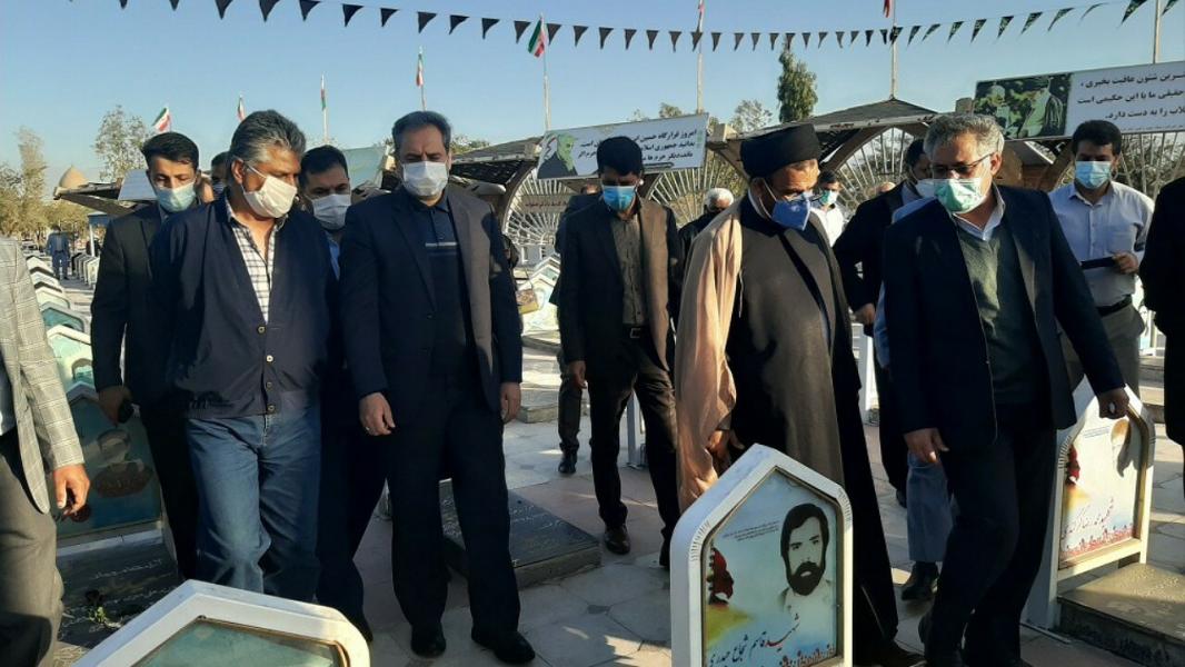 به گزارش خبرنگار گروه استان های باشگاه خبرنگاران جوان از کرمان، کاظم خاوازی وزیرجهادکشاورزی به همراه زینی وند استاندار کرمان که به منظور بازدید از پتانسیلهای کشاورزی جنوب و مزارع خسارت دیده از سرما و افتتاح چندین پروژه کشاورزی به جنوب کرمان سفر کرده است، در بدو ورود به شهرستان جیرفت، با حضور در گلزار شهدا به مقام شامخ شهیدان ادای احترام کرد.