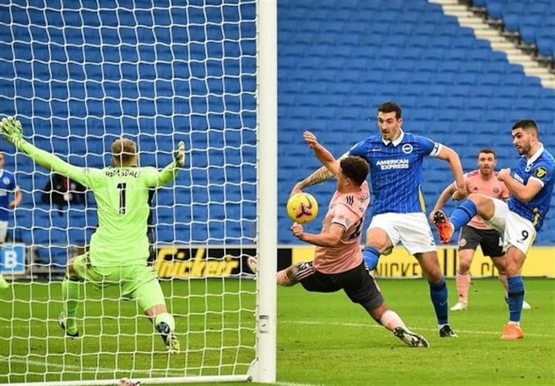 شاگردان گراهام پاتر در روزی که بال ایرانی خود را ۴۵ دقیقه در ترکیب داشتند، مقابل شفیلدیونایتد قعرنشین تن به تساوی دادند. به گزارش خبرگزاری تسنیم، در ادامه بازیهای هفته چهاردهم لیگ برتر انگلیس، از ساعت ۱۵:۳۰ امروز (یکشنبه) تیم فوتبال برایتون در ورزشگاه خانگی خود به مصاف شفیلدیونایتد قعرنشین رفت و در نهایت به تساوی یک - یک بسنده کرد. ابتدا جیدون بوگله در دقیقه ۶۳ برای شفیلدیونایتد گلزنی کرد، اما در ادامه دنی ولبک در دقیقه ۸۷ گل تساوی را برای تیم تحت هدایت گراهام پاتر به ثمر رساند.