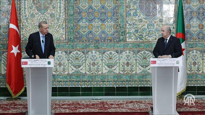 رئیس جمهور الجزایر در دیدار با رئیس جمهور ترکیه در ادامه تأکید کرد: بر لزوم محاکمه عوامل نسل کشی در غزه در دیوان بین المللی کیفری تاکید کردیم.
