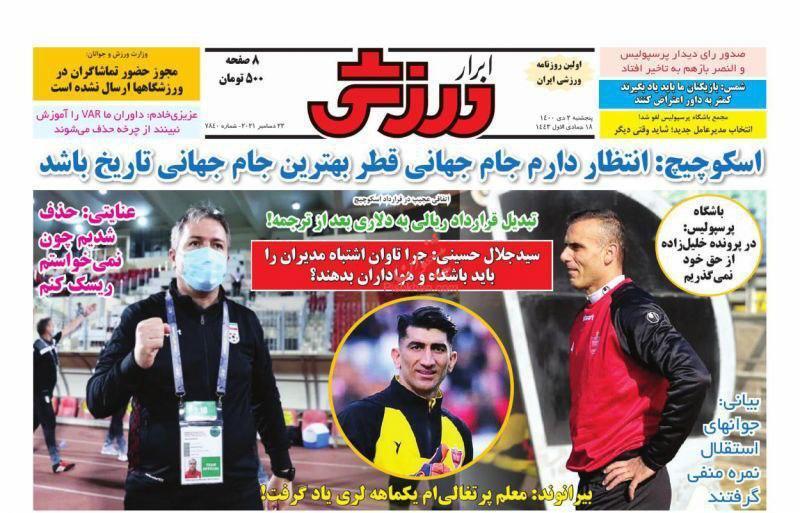 به گزارش باشگاه خبرنگاران جوان، تصاویر نیم صفحه روزنامههای ورزشی ۲ دی ماه به رشتههای مختلف ورزشی اختصاص یافته است.