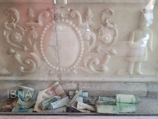 انداختن پول در مزار شخصیتها، رسمی است که پایه مستندی ندارد و معمولا با نیت و براساس باورهای شخصی، مبلغی اهدا میشود.
