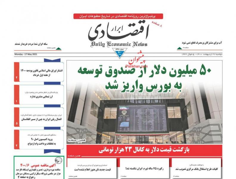 تصاویر صفحه نخست روزنامه های اقتصادی ۲۷ اردیبهشت ماه به شرح زیر است: