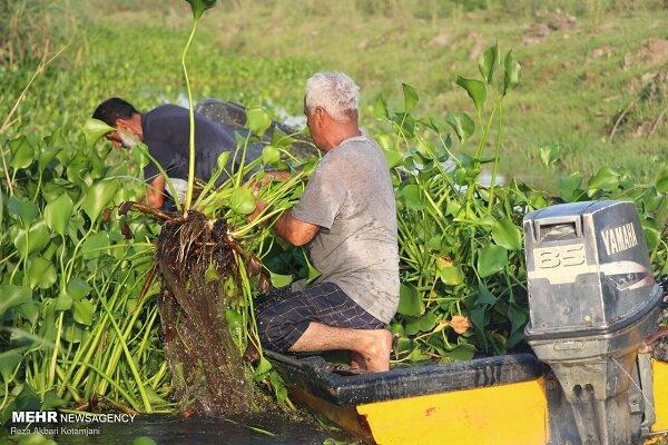 چنبره سنبل آبی بر پیکر بی جان تالاب انزلی