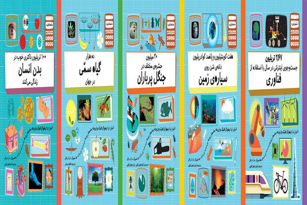 در سری اول، ۵ جلد «ده هزار و هشتصد و بیست گونهی در خطر انقراض در سلسلهی جانوران»، «۷/۶ میلیارد نفر در کشورهای جهان زندگی میکنند»، «۳۴/۷ کوادریلیون دقیقه از انقراض آخرین دایناسور میگذرد»، «۷۰ هزار میلیون میلیون میلیون ستاره در فضا» و «۱/۵ میلیارد وسیلهی حملونقل در جهان» از اینمجموعه چاپ شدند و حالا ۵ جلد دیگر به اینمجموعه افزوده شده است.