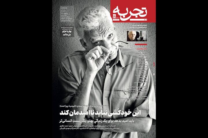 به گزارش خبرگزاری مهر، شماره هجدهم دوره جدید مجله «تجربه» با یک پروندهی ویژه دربارهی مرگِ خودخواسته کیومرث پوراحمد و نحوهی مواجهه جامعه با آن با عنوان اصلی «این خودکشی نباید ناامیدمان کند، باید امید بدهد برای یک زندگیِ بهتر، یک زیستِ انسانیتر» به همراه یادنامههایی برای احمد سمیعی گیلانی و عبدالله انوار و صفحاتی ویژه مواجهه ابراهیم گلستان و ژانلوکگُدار در «تا جمعه، رابینسون» به تازگی منتشر شده و روی پیشخان مطبوعات آمده است.