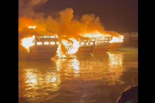 خسارت «۵۰ میلیارد تومانی» آتشسوزی در بندر صیادی در عسلویه؛ هفت لنج باری طعمه حریق شدند