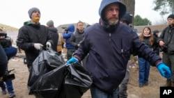 گزارشها میگویند که اجساد صدها غیرنظامی از مناطقی که پیشتر تحت کنترل روسها بود، پیدا شده است که در میان آنها اجساد شهردار یک شهر و خانواده او نیز دیده میشوند.