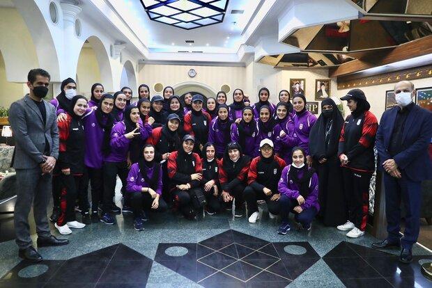 به گزارش خبرگزاری مهر و به نقل از سایت فدراسیون فوتبال، اعضای تیم ملی فوتبال بانوان پس از صعود به مسابقات جام ملتهای آسیا ۲۰۲۲ هند با استقبال حسن کامرانی فر سرپرست دبیرکلی، شهره موسوی نایب رئیس فدراسیون در امور بانوان و داود امیدزاده، مشاور اجرایی حوزه ریاست با پرواز اختصاصی وارد تهران شد.