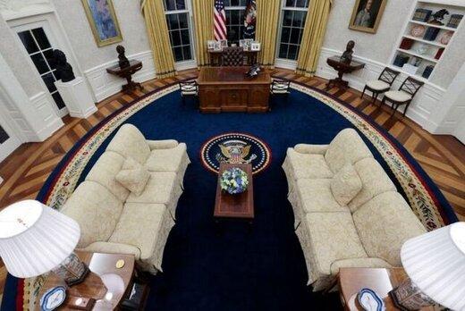 دفتر کاخ سفید محل رسمی کار رئیس جمهوری آمریکاست و همزمان با ورود رئیس جمهوری جدید، بیشتر آنها تزئینات پردهها، مبلمان و فرش های جدید و همچنین آثار هنری از مجموعه کاخ سفید، موزهها و مجموعه داران را انتخاب میکنند.