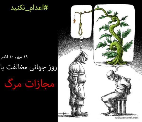 - ۱۰ اکتبر ۲۰۲۰ برابر با ۱۹ مهر ۱۳۹۹ مصادف است با روز جهانی مخالفت با مجازات مرگ ــ طرح از مانا نیستانی