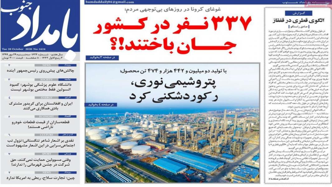 صفحه نخست روزنامههای بوشهر را در ۲۹ مهر ۹۹ اینجا بخوانید.