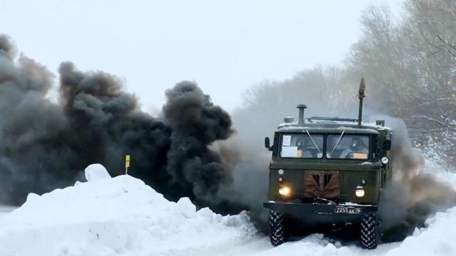 تصاویر ماهوارهای انتقال مقادیر قابل توجهی سخت افزارهای رزمی به مرز بلاروس با اوکراین را نشان میدهد. بلاروس، مثل اوکراین، از جمهوریهای تشکیلدهنده اتحاد شوروی سابق بود که با فروپاشی این کشور مستقل شد.