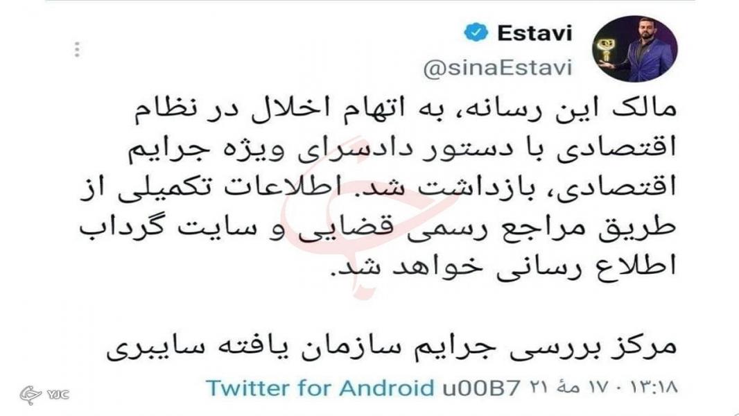 «مالک این رسانه، به اتهام اخلال در نظام اقتصادی با دستور دادسرای ویژه جرایم اقتصادی، بازداشت شد.