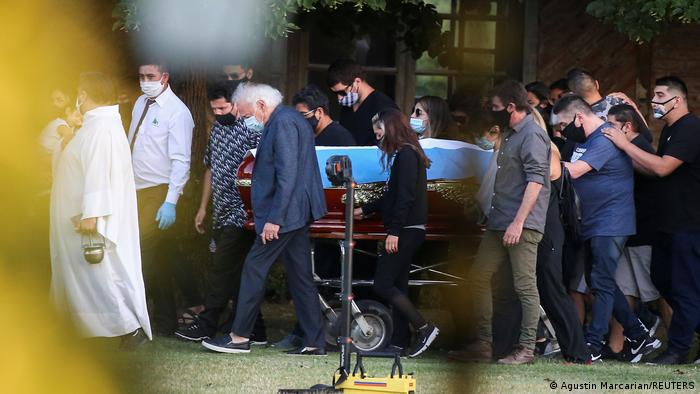 به گزارش خبرگزاری آلمان، مارادونا که تیم ملی فوتبال آرژانتین را در سال ۱۹۸۶ به قهرمانی جهان رساند روز پنجشنبه ششم آذر (۲۶ نوامبر) در آرامگاهی خصوصی در حومه بوئنوس آیرس در کنار والدینش به خاک سپرده شد.