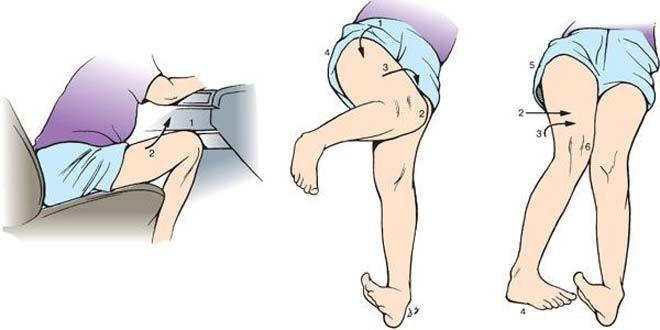 در این موارد باید مفصل ران به دقت بررسی شود و برای رد کردن احتمال وجود در رفتگی، از عکسبرداری لگن با اشعه ایکس استفاده شود.