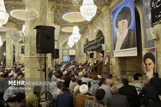 در این مراسم آیت الله جوادی آملی و آیت الله نوری همدانی از مراجع تقلید، آیت الله حسینی بوشهری رییس جامعه مدرسین حوزه علمیه قم، آیت الله مقتدایی عضو شورای عالی مدیریت حوزه، آیت الله شب زنده دار عضو فقهای شورای نگهبان، تعدادی از اعضای جامعه مدرسین حوزه علمیه قم، تعدادی از اساتید سطوح عالی حوزه علمیه قم، طلاب و روحانیون و اقشار مختلف مردم حضور داشتند.