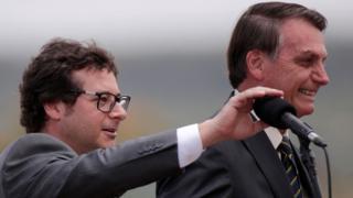 فابیو واینگاتن که در حال تنظیم میکروفن ژائیر بولسونارو است هفته پیش به آمریکا آمده بود