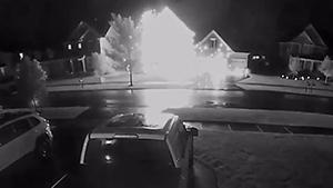 برخورد صاعقه به یک خانه در روستای «البرن» ایالات متحده توسط دوربین مداربسته ضبط شده است.