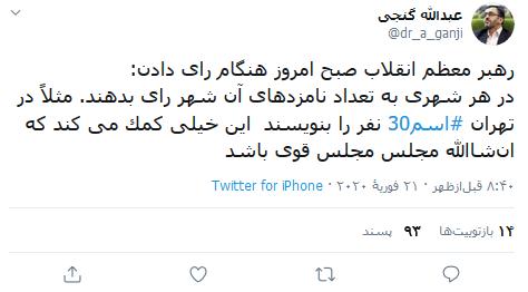 «در هر شهری به تعداد نامزدهای آن شهر رای بدهند. مثلاً در تهران اسم ۳۰ نفر را بنویسند این خیلی کمک میکند که انشاالله مجلس مجلس قوی باشد.»