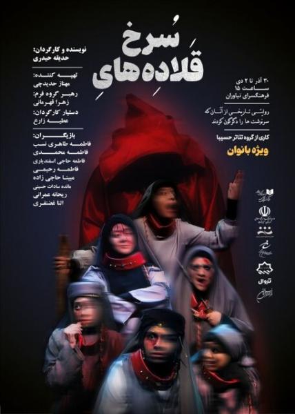 «قلادههای سرخ» به تهیهکنندگی مهناز حدیدچی اجرا میشود و گروهی متشکل از فاطمه طاهری نسب، فاطمه محمدی، فاطمه رحیمی، فاطمه حاجی اسفندیاری، مبینا حاجی زاده، مائده سادات حسینی، ریحانه عمرانی، النا غضنفری در آن به ایفای نقش میپردازند.