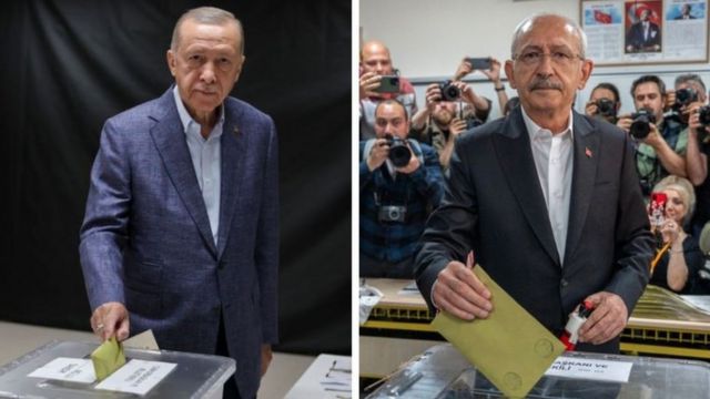 رجبطیب اردوغان و کمال قلیچداراوغلو در حال دادن در انتخابات امروز