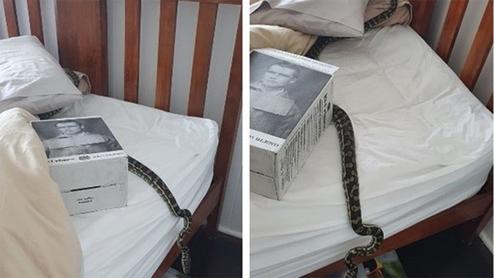 "باشگاه خبرنگاران: یک زن که پنجره اتاقش را باز گذاشته بود، با هجوم مار به تختش روبهرو شد؛ حرکت این مار بزرگ از پنجره اتاق این زن برای رسیدن به رختخوابش، شبیه به یک فیلم ترسناک بود"تصاویری از یک تیم شکارچی مار در فیسبوک به اشتراک گذاشته شده است که بر اساس آن مار عظیم الجثه که به محل زندگی این زن نفوذ کرده بود شکار شده است. در این تصاویر مار در حالی که بدنش روی تشک و بالش پهن شده ظاهر میشود، در حالی که سرش از تخت آویزان بود و کاملا مشخص بود که در تشک میخزد. این زن در طول هفته گذشته این مار را در حیاط خانه خود میدید، ولی اعتنایی به حضور این خزنده نکرده بود. این مار جزو مارهای Carpet Python است که میتوانند به طول ۳ متر برسند. آنها مارهای غیرسمی هستند که تقریبا در سراسر استرالیا زندگی میکنند.