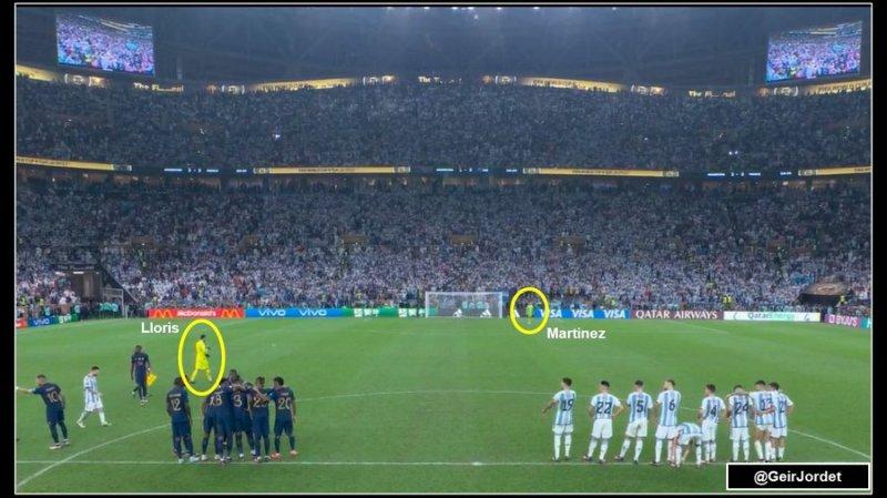 مارتینز از آغاز محوطه جریمه را مال خود کرده و آن را به صحنه نمایش خود تبدیل کرد. درحالیکه لوریس هنوز در کنار داور ایستاده بود تا مراسم پرتاب سکه به پایان برسد مارتینز خودش را به محوطه جریمهای که قرار بود پنالتیها در آن زده شود رساند و منتظر ماند تا لوریس از راه برسد. مارتینز به این ترتیب خودش را به نوعی صاحبخانه جلوه داد که منتظر است تا مهمانش از راه برسد.