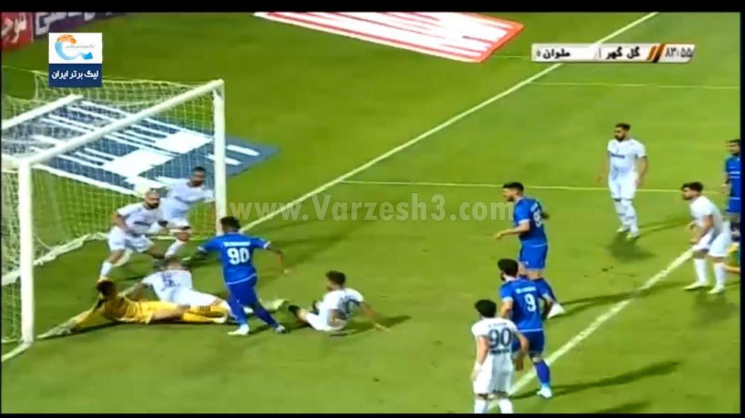 در حالی که می رفت دیدار گل گهر و ملوان با وجود حملات خطرناک میزبان، با تساوی بدون گل به پایان برسد، تور دروازه میهمان در آخرین دقایق کار به لرزه درآمد. ارسال کرنر از سمت راست، ضربه سر شکاری، مهار زیبای صادقی، ریباند بایناما، تکل کشنده مدافع ملوان و شادی مهاجم گابنی، صحنه ای بود که تلاش های میزبان را سرانجام به نتیجه رساند.