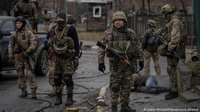 در پی عقبنشینی نیروهای روس، ایرینا وندیکتووا، دادستان کل اوکراین اعلام کرده که۴۱۰ جسد در مناطق حومه کییف پیدا شده است. او گفت که این اجساد از "مناطق آزاد شده حومه کییف به مکانی امن منتقل شدهاند".